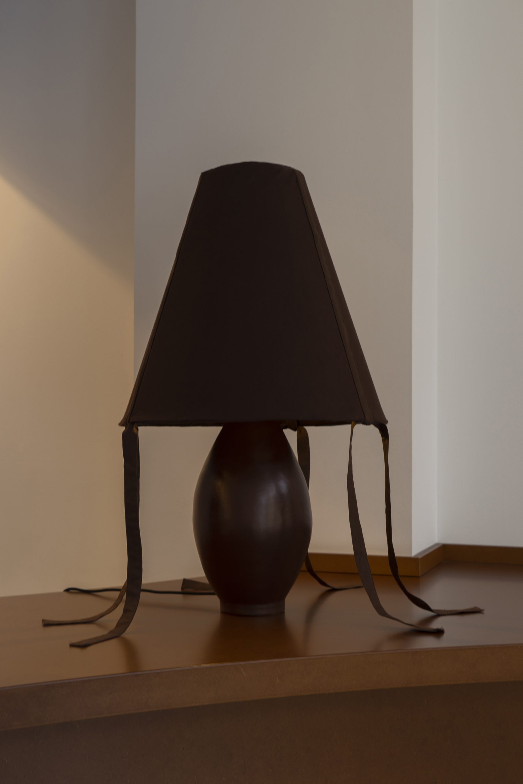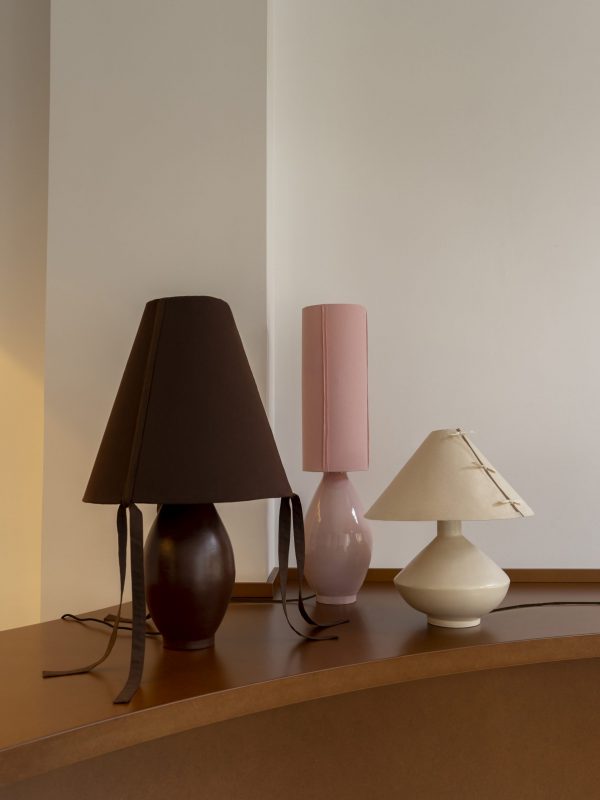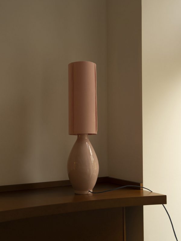 We have created a large-scale reissue of our glass lamp line. This time, the base is ceramic, and its large dimensions give the piece a sculptural character.