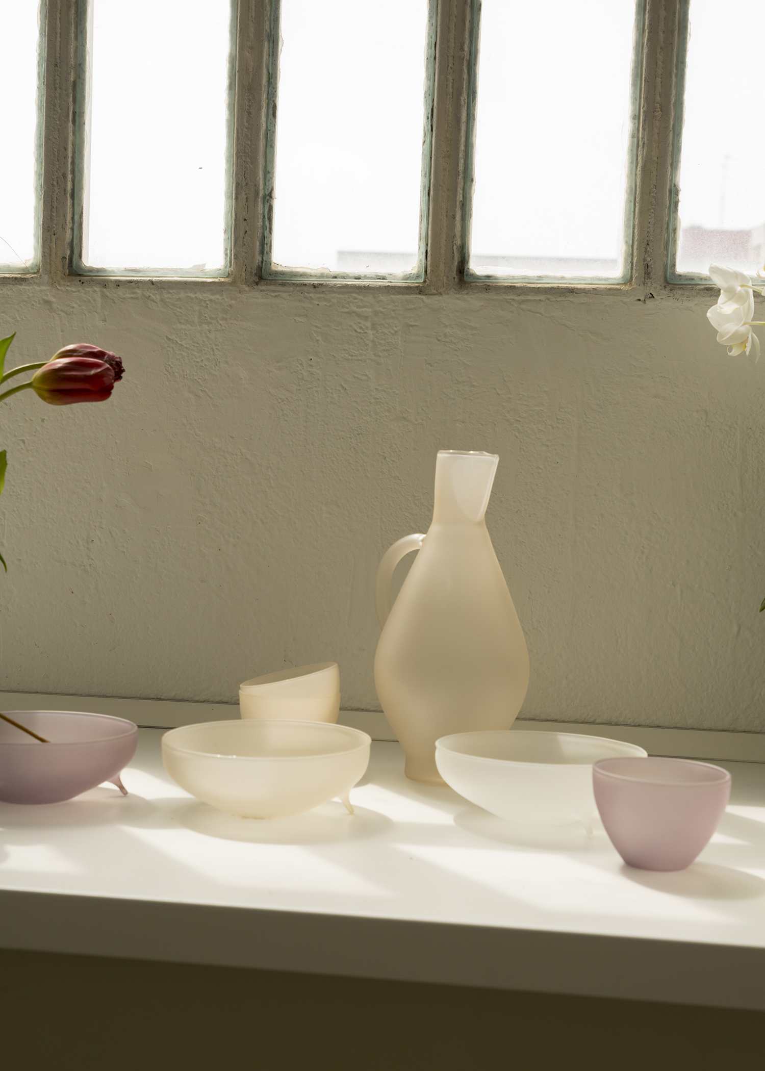 MATERIAL: Tinted borosilicate glass. Opal finish. Blown